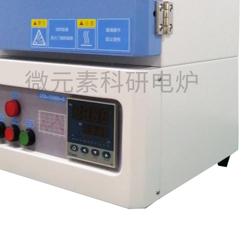 ?爐體結構:采用雙層殼體結構,并帶有風冷系統;爐膛采用高純氧化鋁纖維材料,最大程度的減少能量損失;內爐膛表面涂有美國進口的高溫氧化鋁涂層,可以提高反射率及設備的加熱效率,同時也可以延長儀器的使用壽命,帶有過熱和斷偶保護;爐膛內兩面加熱,加熱速率快,溫場均勻;爐門配有安全限位開關,并且爐門上安裝有一個保護門閂,防止意外開啟及爆炸
